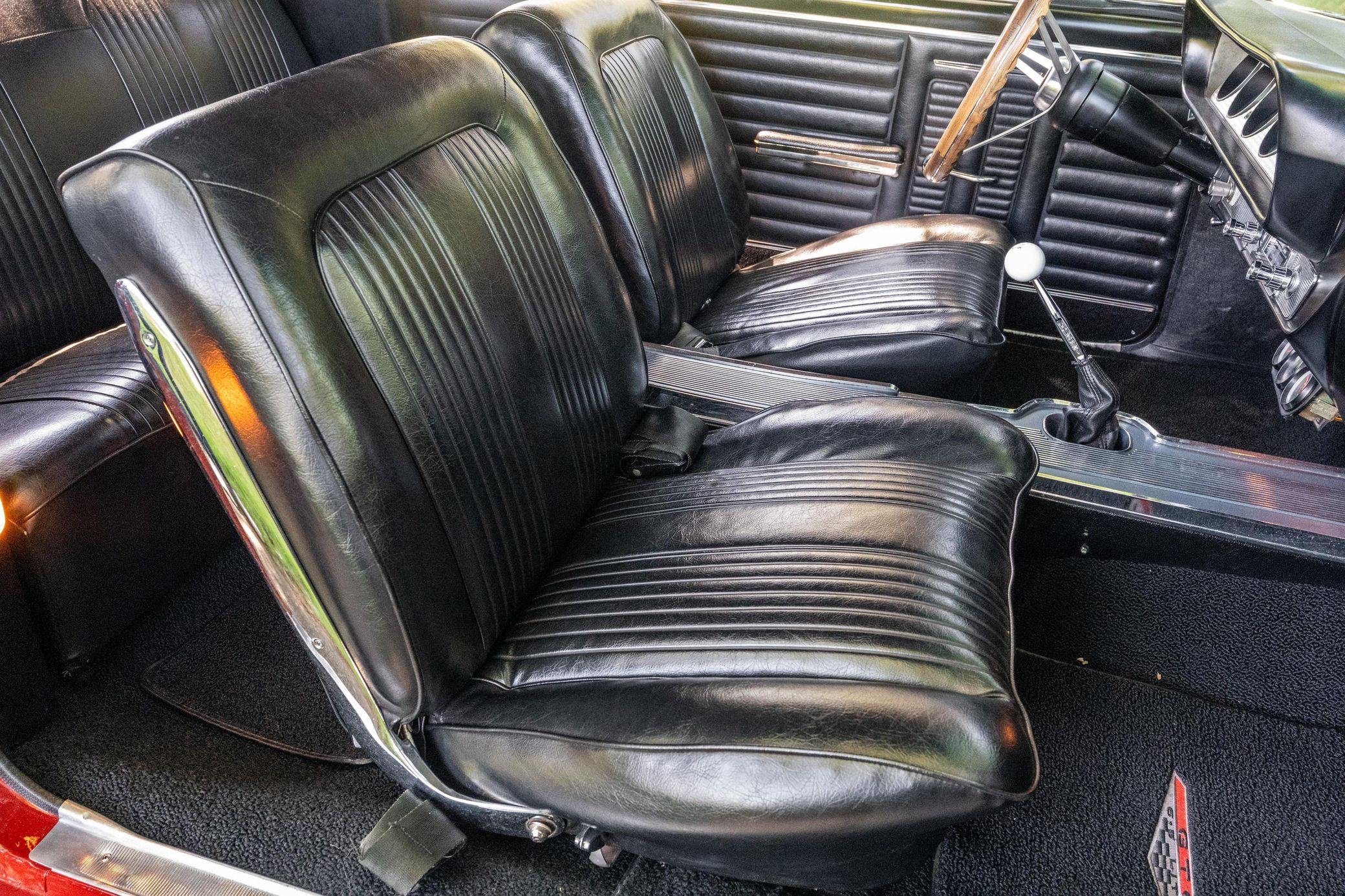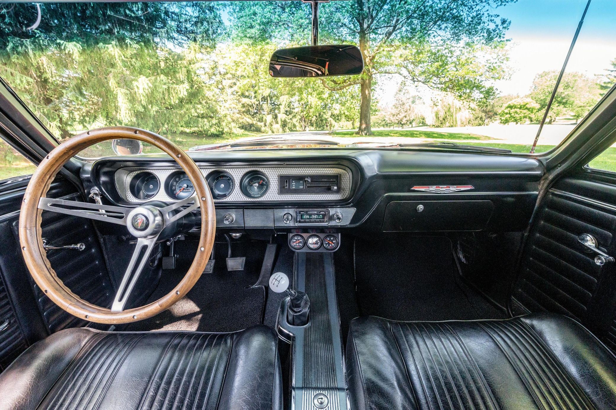 A partial list of notable currently installed equipment reported by the seller includes: 389-cubic-inch Tri-Power V8 TREMEC 5-speed manual transmission Power steering 14-inch wheels Front bucket seats Wood-rimmed steering wheel Bosch auxiliary gauges Full-length center console Newer radio with digital display