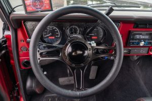 A partial list of notable currently installed equipment reported by the seller includes: – Duramax 6.6-liter turbodiesel V8 – EFILive engine management system – Aftermarket turbocharger – EGR valve delete kit – Allison 5-speed automatic transmission – Part-time 4-wheel drive system – RCV front axles – Custom-made frame – 20-inch TIS Offroad wheels – KYB Excel-G shocks – Custom-made rear wheel arch extensions – TMI Products seats – Vintage Air air conditioning – Aftermarket parts in the sound system (including Pioneer head unit)