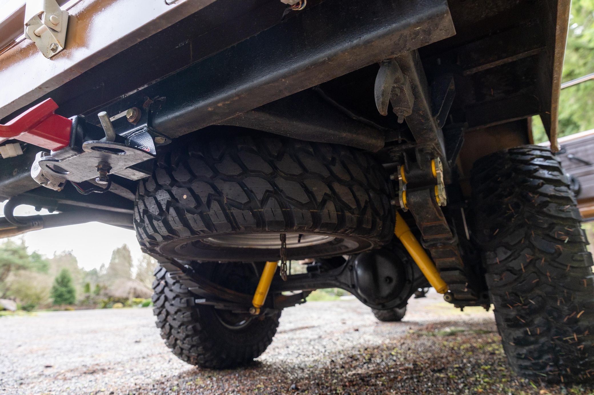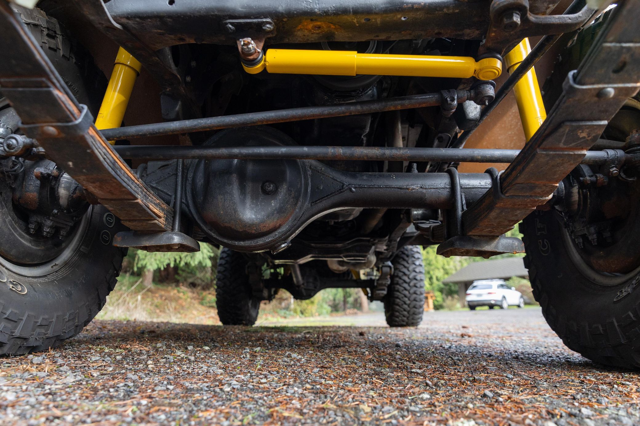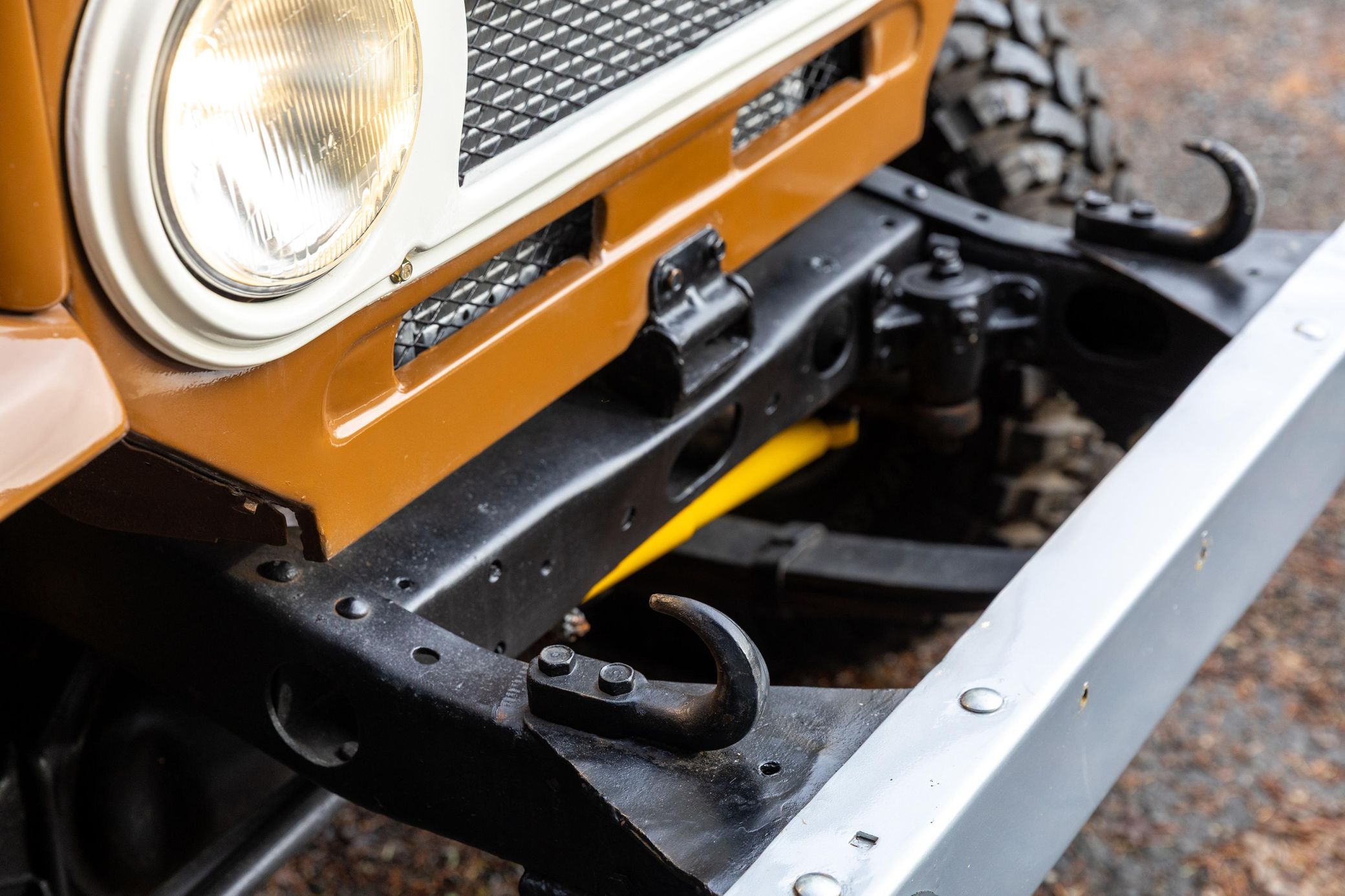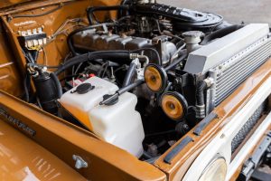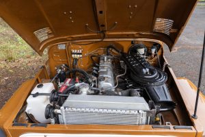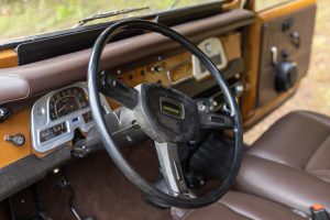 A partial list of notable currently installed equipment reported by the selling dealer includes: – 15-inch steel wheels – 2-speed transfer case – Aluminum radiator – Aftermarket exhaust system with chrome tip – Monroe shocks and steering stabilizer – Trailer hitch – Vinyl upholstery – 60/40 bench seat – 3-point seatbelts – Upholstered dash pad – Carpet kit – Cloth headliner – Fidelity air conditioning – Pioneer head unit – Gravity door speakers