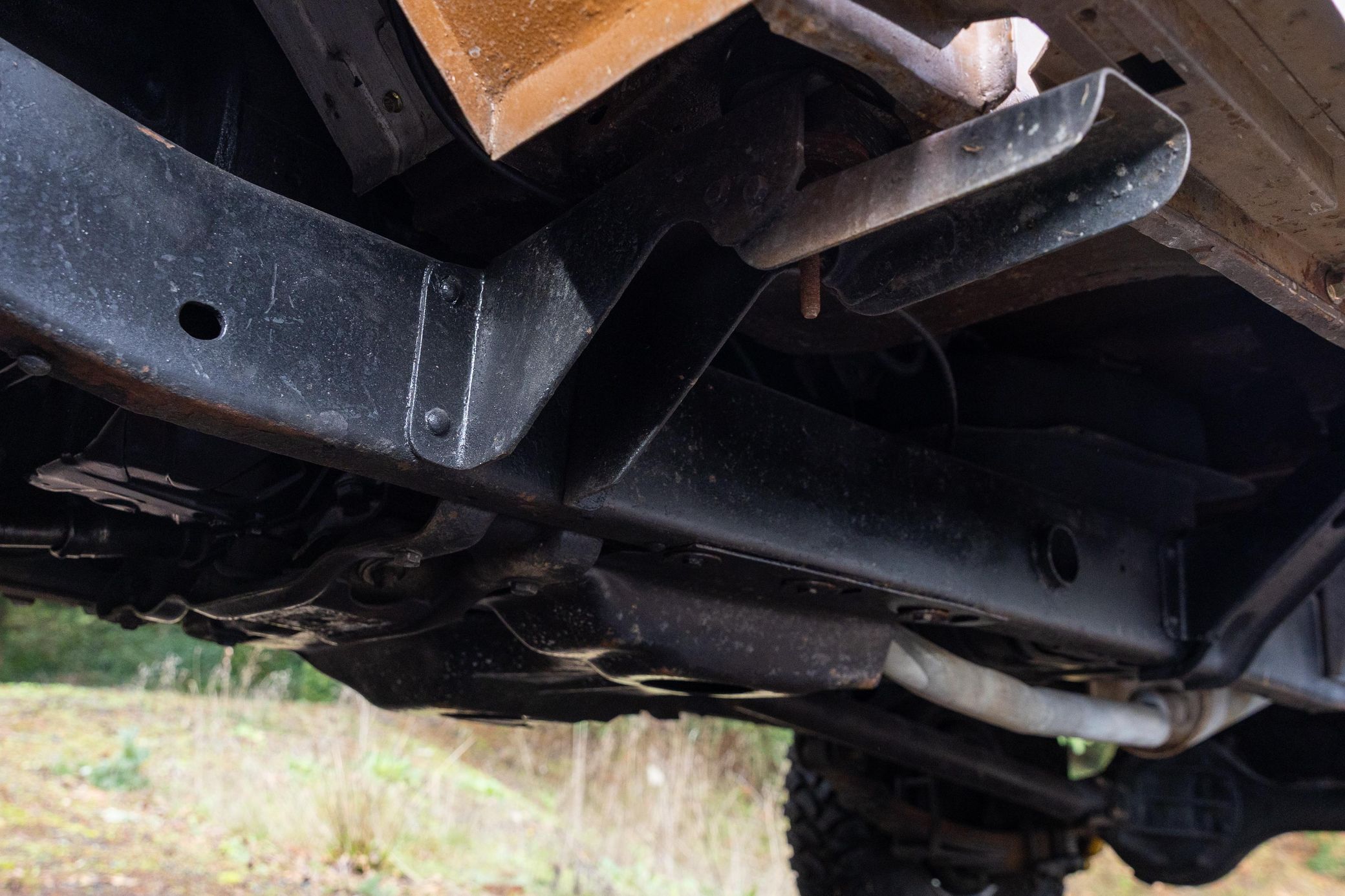 – Some paint cracking on tow hooks and bumper mounts – Some bondo lines on the driver side rear bed – Some wear on the instrument cluster – Bent steering wheel – Missing head rests and passenger seat tilt-adjustment handle – Some rust on the underbody