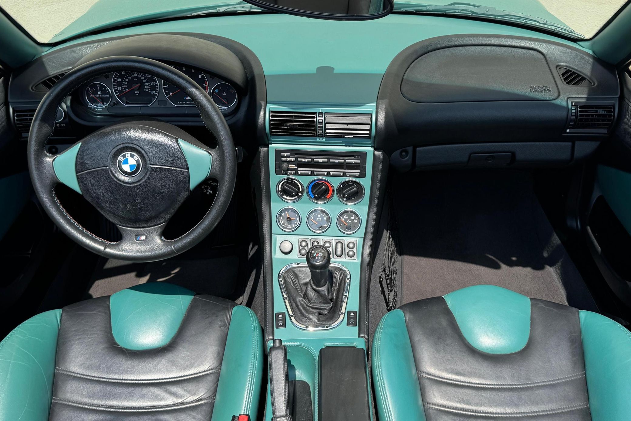 THIS… is a 1999 BMW Z3 M Roadster, finished in Evergreen with a black soft top and an Evergreen and black interior. This Z3 M features a 5-speed manual transmission, and its odometer currently indicates approximately 23,700 miles. The attached Carfax history report shows a gap between 1999 and 2003, though it lists no accidents or mileage discrepancies for the given time period. According to the window sticker provided in the gallery, notable factory equipment includes 17-inch Style 40 wheels, a limited-slip differential, a power-retractable soft top, Nappa leather upholstery, heated sport seats, and a Harman/Kardon sound system. The selling dealer reports no notable modifications. Based on the Z3, the M Roadster made its debut in 1998 with a more powerful engine shared with the E36 M3, a sportier suspension system, and wider wheel arches, among other changes. It was immediately hailed as one of the best driver’s cars on the market. Power comes from an S52 3.2-liter straight-6, rated at 240 horsepower and 236 lb-ft of torque. Output is sent to the rear wheels via a 5-speed manual transmission.