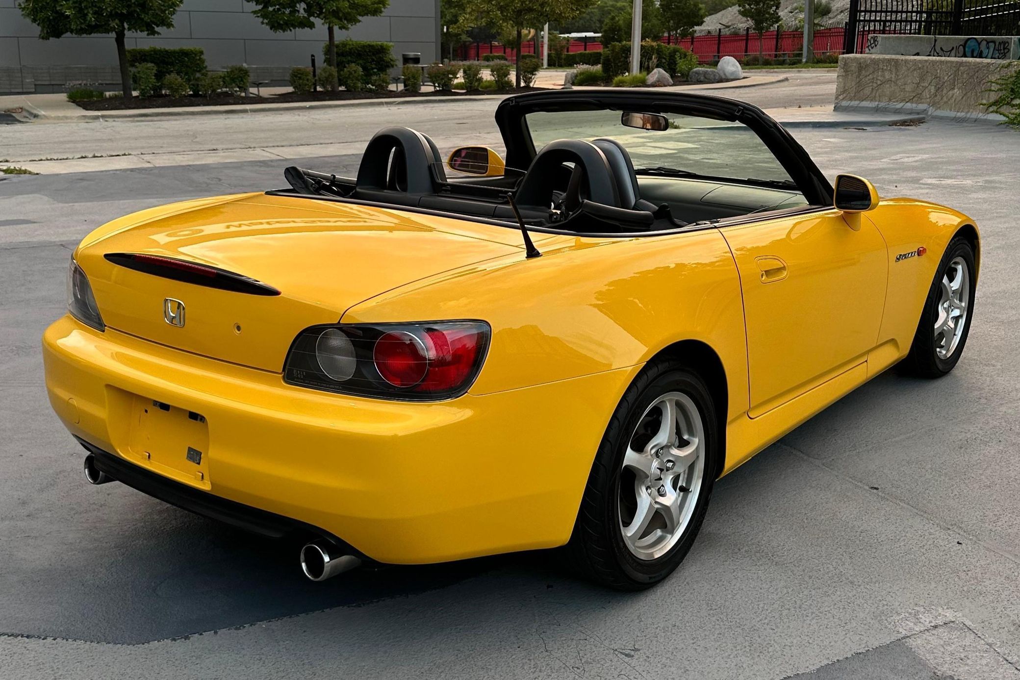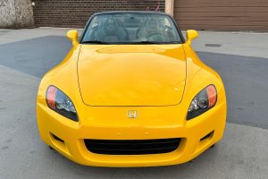THIS… is a 2002 Honda S2000, finished in Spa Yellow Pearl with a black soft top and a black interior.