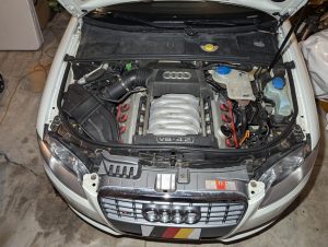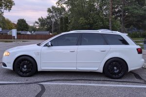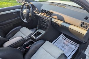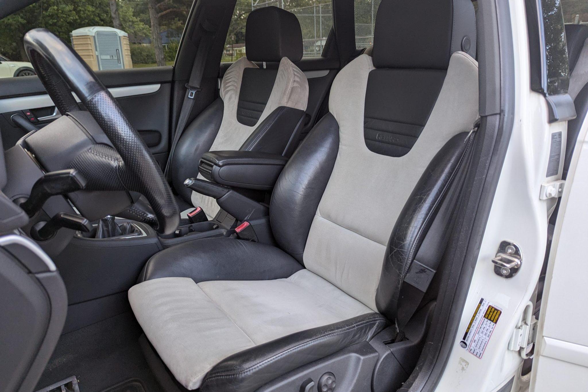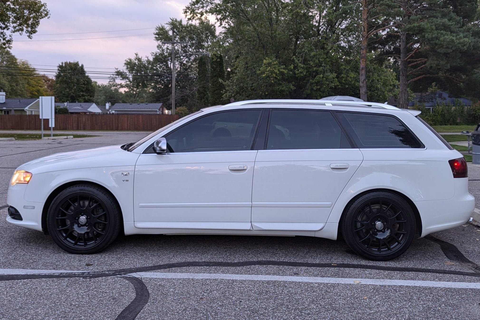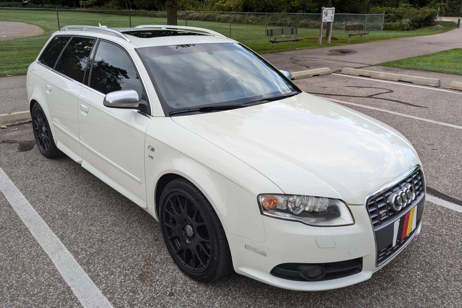 THIS… is a 2006 Audi S4 Avant, finished in Arctic White with a silver and black interior. This S4 features the desirable 6-speed manual transmission. The attached Carfax vehicle history report shows no accidents or mileage discrepancies in this S4’s past. According to the build sheet provided in the gallery, notable factory equipment includes 18-inch wheels, a power sunroof, leather upholstery, and heated Recaro front and rear seats. Notable modifications reported by the seller include black powder-coated wheels, a JVC head unit, and an underbody coating. Released for 2006, the B7-based S4 received an evolution of its predecessor’s 4.2-liter V8 engine and a suspension system retuned to deliver a sportier driving experience. Visual tweaks set it apart from the A4, but it retained a relatively low-key design. Power comes from a 4.2-liter V8, rated at 340 horsepower and 302 lb-ft of torque. Output is sent to all four wheels via a 6-speed manual transmission and Audi’s Quattro all-wheel drive system.