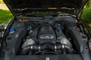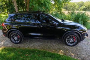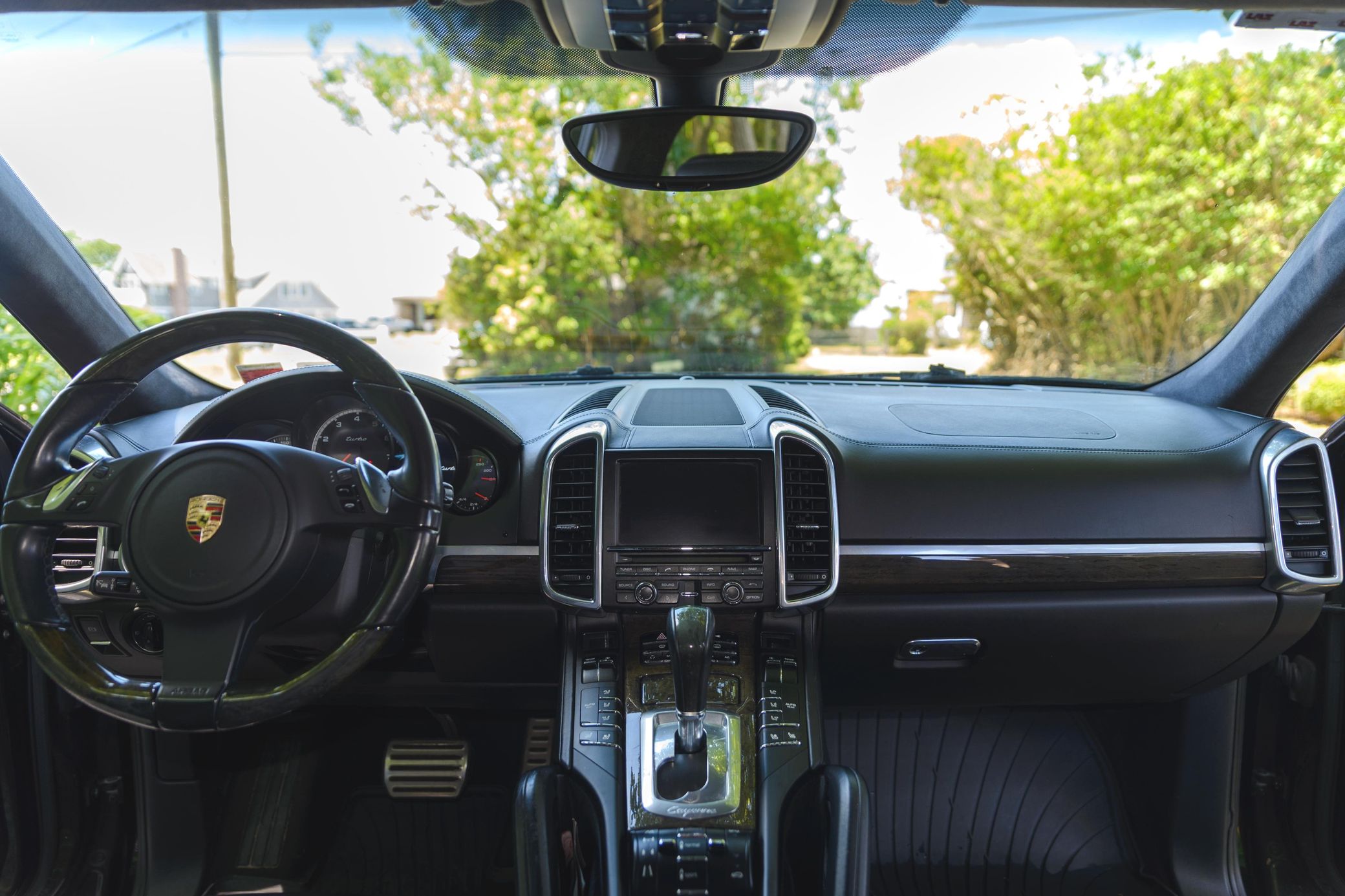 THIS… is a 2012 Porsche Cayenne Turbo, finished in black with a black interior. This Cayenne Turbo was previously owned by The Fast Lane YouTube channel, and content related to this Porsche can be seen in the „World’s Fastest Overlander/Transrockies” YouTube series. The attached Carfax vehicle history report shows no accidents or mileage discrepancies in this Cayenne’s past. According to the build sheet provided in the gallery, notable factory equipment includes the Premium Package Plus, Porsche Dynamic Chassis Control (PDCC), Porsche Torque Vectoring Plus (PTV Plus), a panoramic sunroof, a Burmester High-End Surround Sound system, and more as detailed below. Notable modifications reported by the seller include an aftermarket ECU tune, 19-inch Sport Edition wheels, and a rear seat entertainment system. Released for the 2011 model year, the second-generation Cayenne (called 958 internally) was slightly bigger and significantly lighter than its predecessor. It offered a smoother ride thanks to additional technology and luxury features, it was just as capable off-road, and critics agreed it was noticeably sportier than the first-generation model. Production ended in 2017. Power comes from a twin-turbocharged 4.8-liter V8, rated at 500 horsepower and 516 lb-ft of torque in stock form. Due to the tune performed on this Cayenne, it may produce more power, but a dyno sheet was not provided to confirm. Output is sent to all four wheels via an 8-speed automatic transmission.