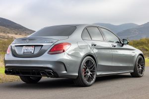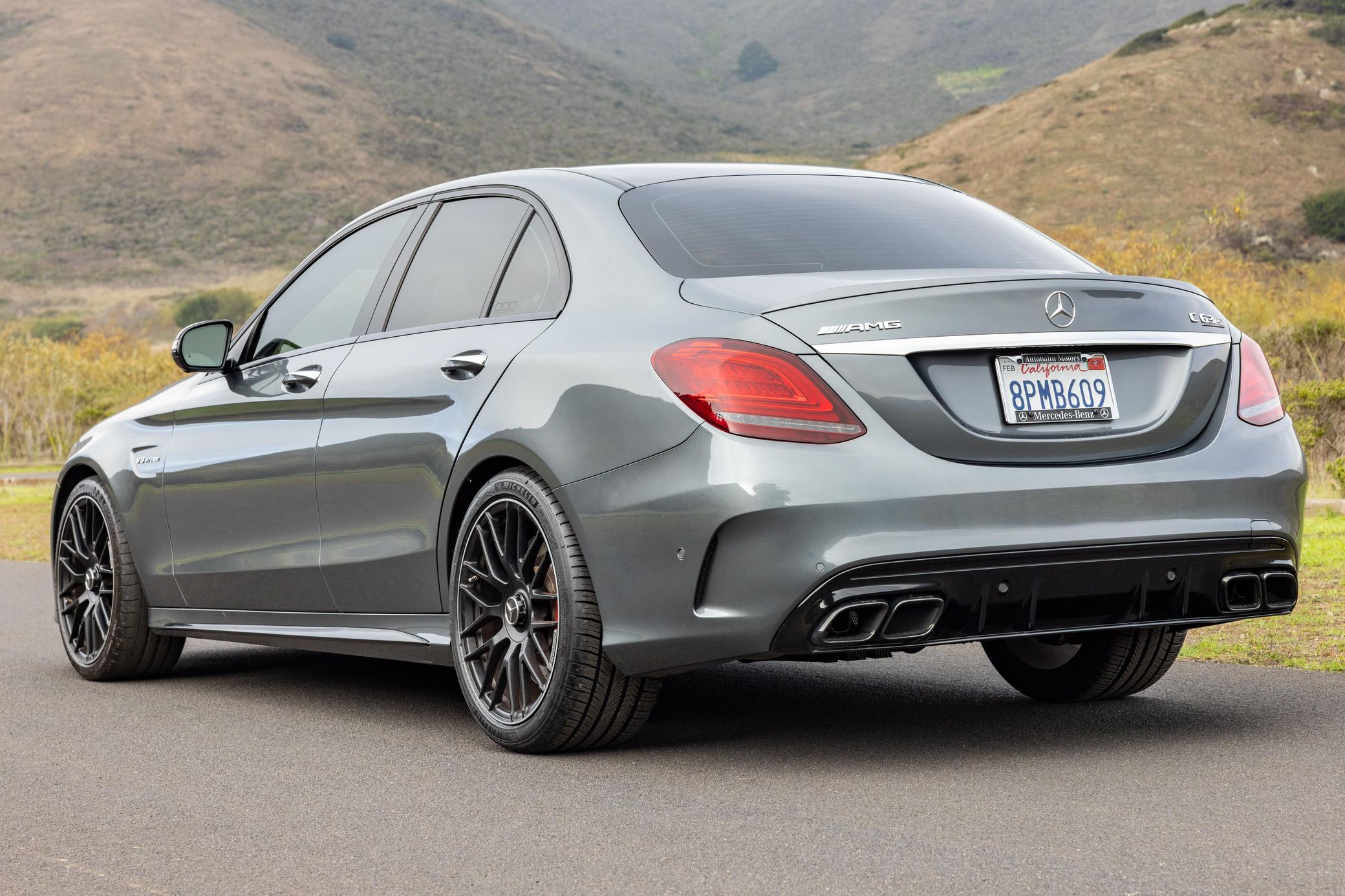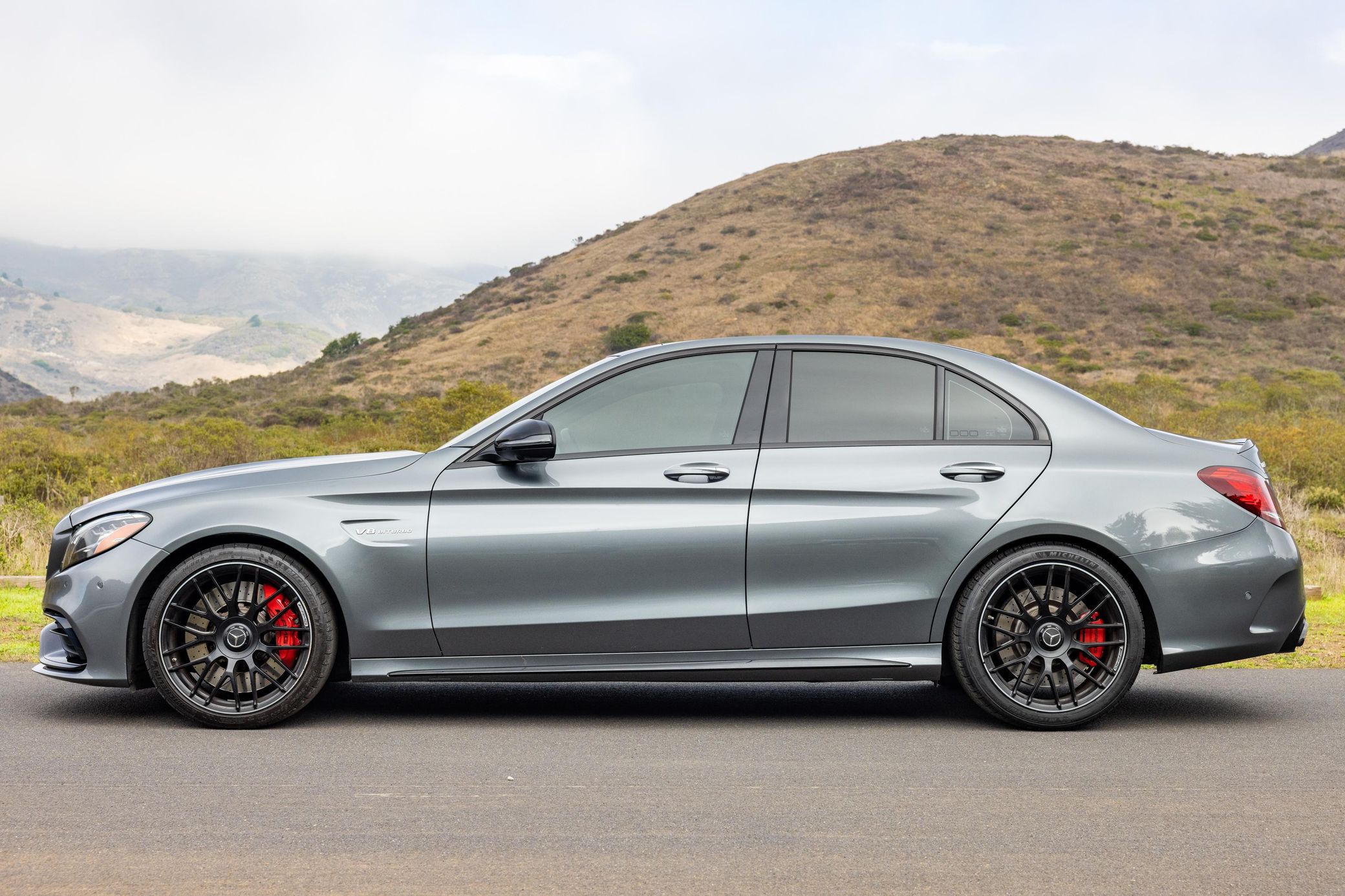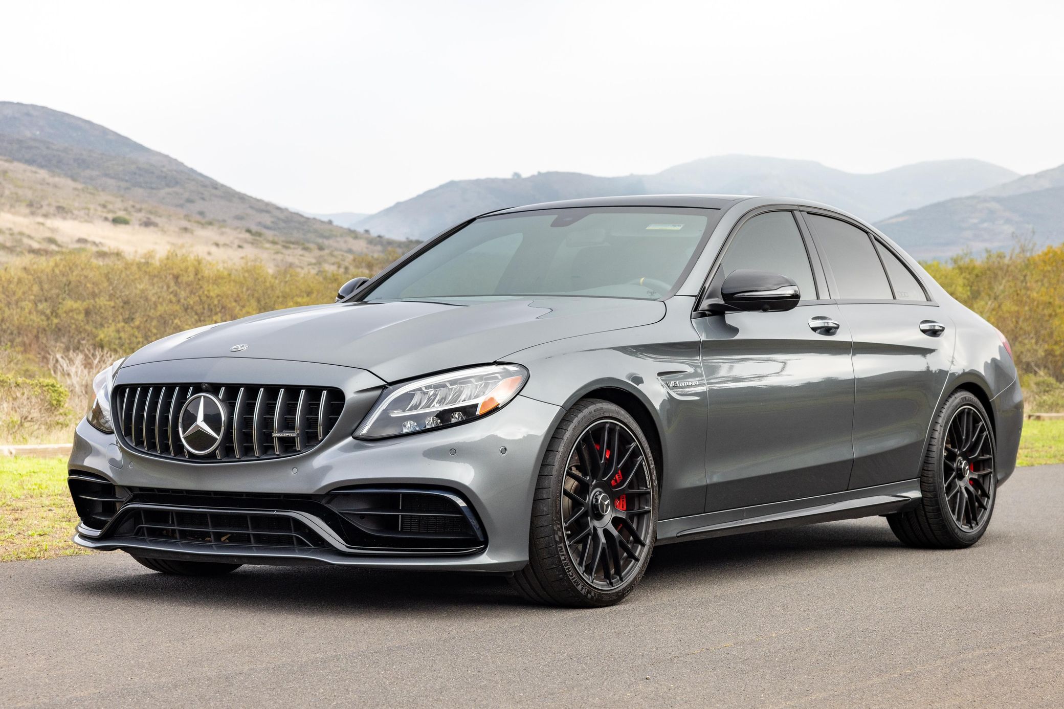 THIS… is a 2020 Mercedes-AMG C63 S Sedan, finished in Selenite Grey Metallic with a black and gray interior. The odometer on this C63 currently displays approximately 12,600 miles. The Mercedes-AMG C63 S is a high-performance variant of the C-Class sedan, offering a blend of luxury and sportiness. Introduced in 2015, the C63 S is powered by a twin-turbocharged V8 engine, delivering impressive performance and a distinctive exhaust note. With its advanced features and high-quality interior, the C63 S continues to be a popular choice among performance sedan enthusiasts. Power comes from a 4.0-liter twin-turbocharged V8, rated at 503 horsepower and 516 lb-ft of torque. Output is sent to the rear wheels via a 9-speed automatic transmission.