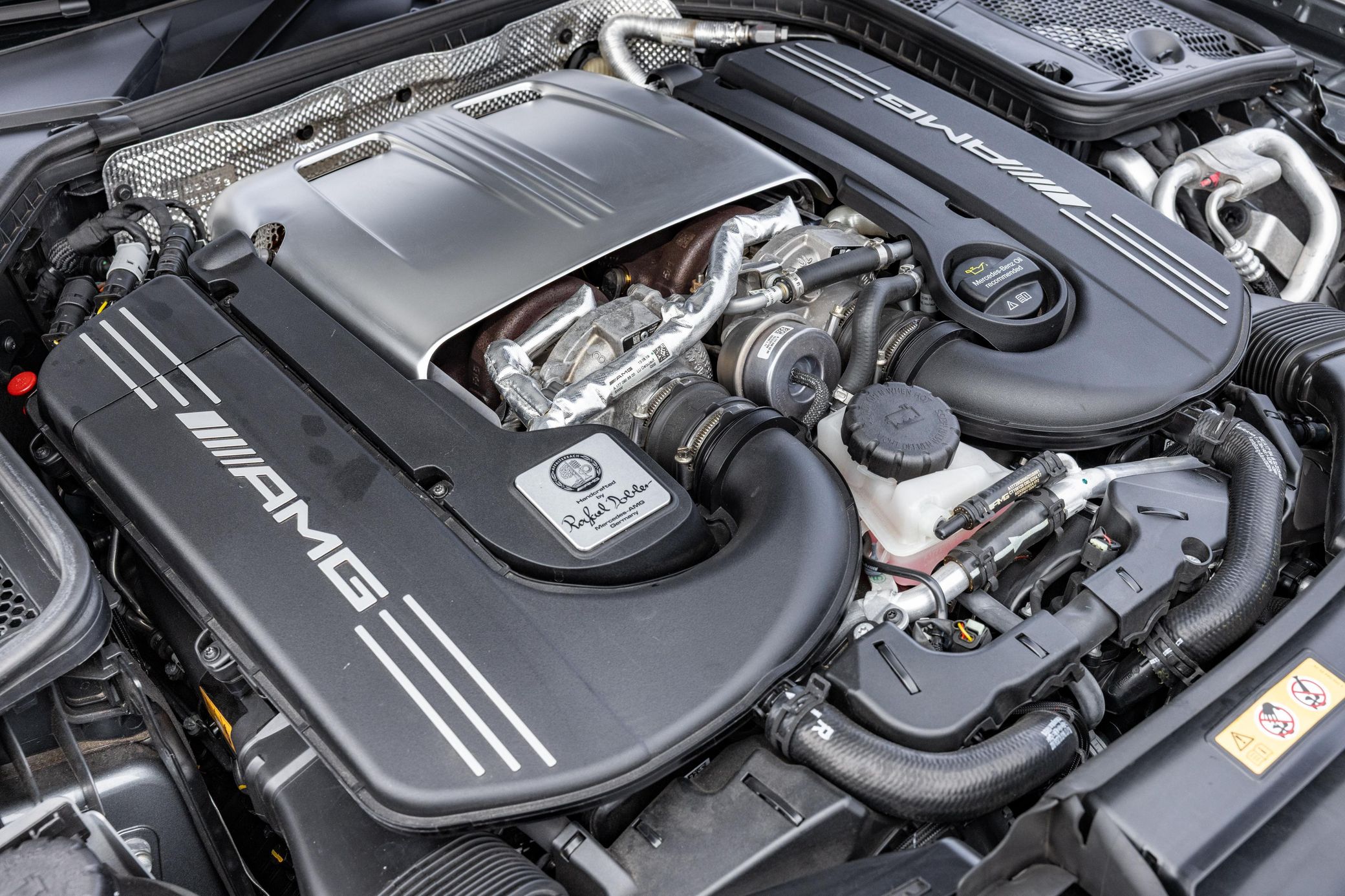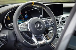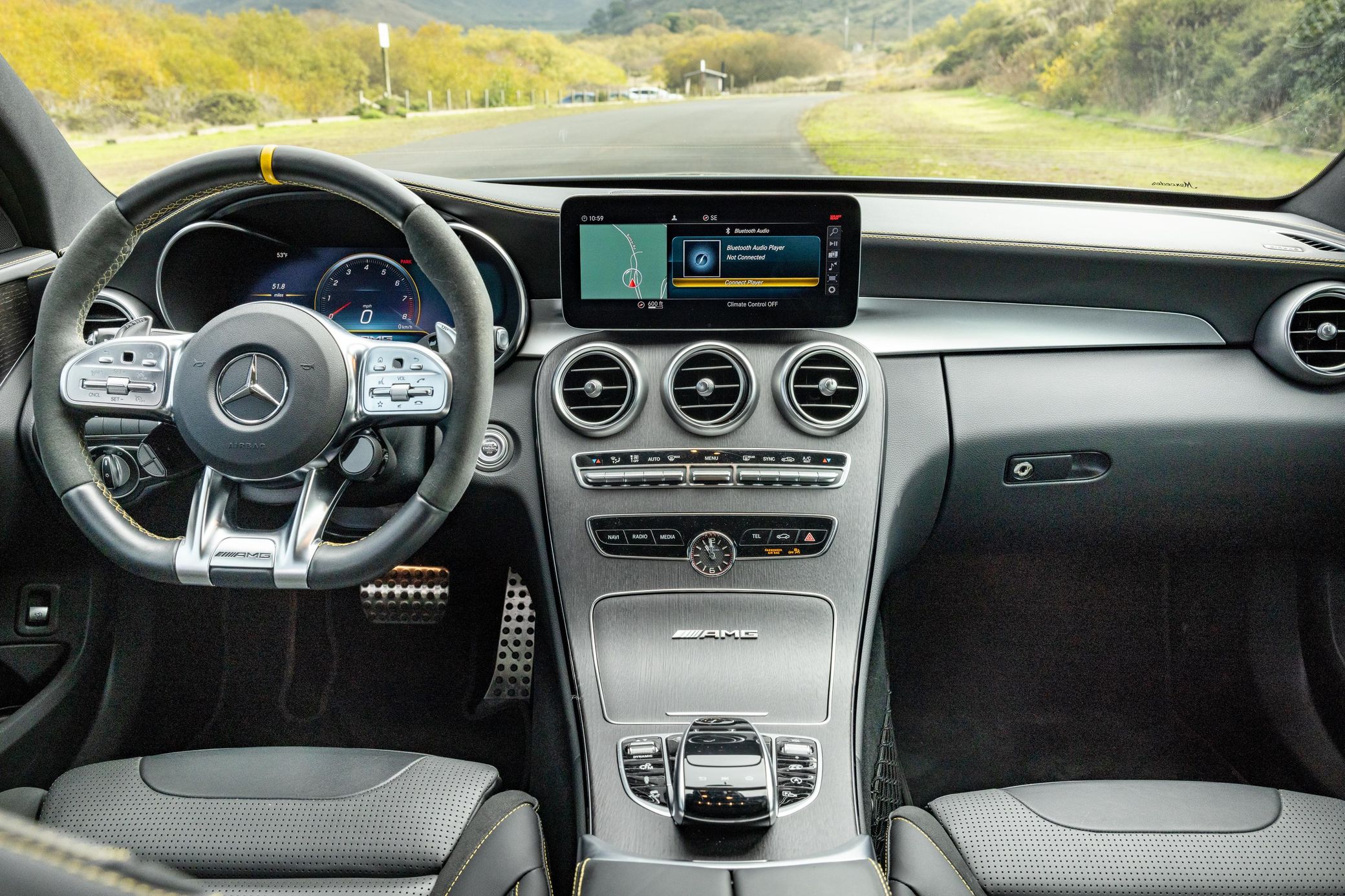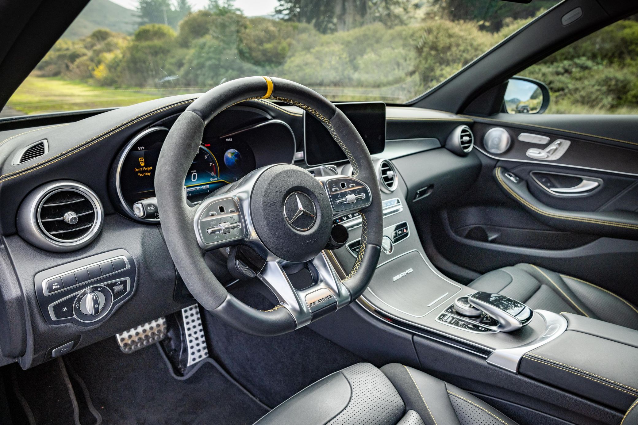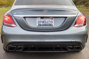 THIS… is a 2020 Mercedes-AMG C63 S Sedan, finished in Selenite Grey Metallic with a black and gray interior. The odometer on this C63 currently displays approximately 12,600 miles. The Mercedes-AMG C63 S is a high-performance variant of the C-Class sedan, offering a blend of luxury and sportiness. Introduced in 2015, the C63 S is powered by a twin-turbocharged V8 engine, delivering impressive performance and a distinctive exhaust note. With its advanced features and high-quality interior, the C63 S continues to be a popular choice among performance sedan enthusiasts. Power comes from a 4.0-liter twin-turbocharged V8, rated at 503 horsepower and 516 lb-ft of torque. Output is sent to the rear wheels via a 9-speed automatic transmission.