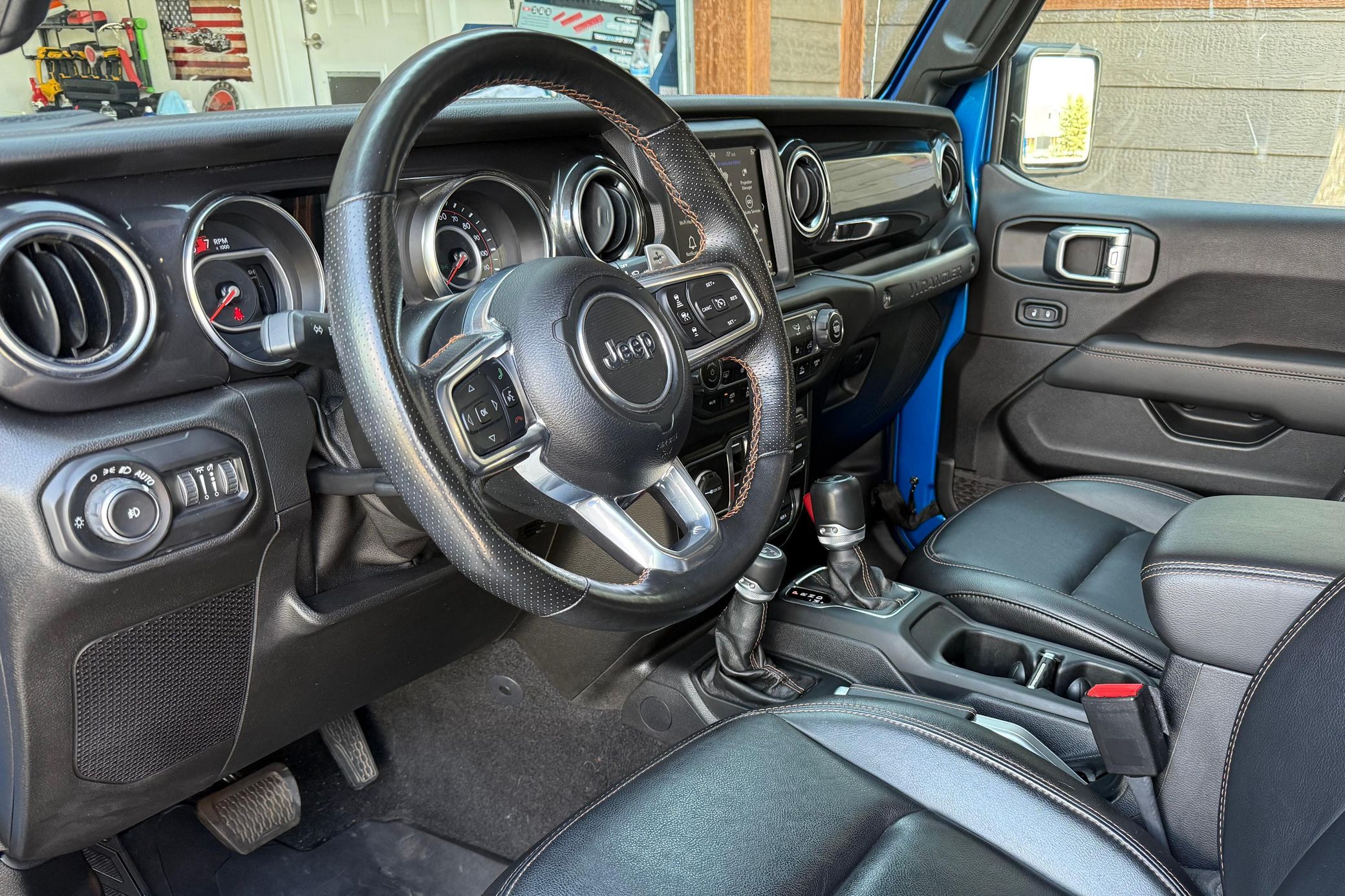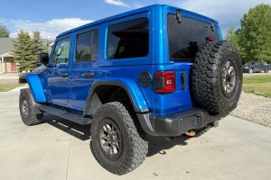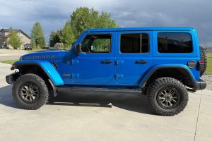 THIS… is a 2021 Jeep Wrangler Unlimited Rubicon 392 4×4, finished in Hydro Blue Pearl with a black interior. The odometer on this Jeep currently displays approximately 16,800 miles. The attached Carfax vehicle history report shows no accidents or mileage discrepancies in this Jeep’s past. It also shows that this Jeep has been registered to one owner since new. According to the digital window sticker provided in the gallery, notable factory equipment includes the Trailer Tow Package, 17-inch beadlock-capable wheels, Tru-Lok front and rear axles, a 3.73 rear axle ratio, a body-colored 3-piece hardtop, leather upholstery, heated front seats, an Alpine premium audio system, and an integrated off-road camera. Notable modifications reported by the seller are limited to aftermarket running boards. The 392 Wrangler is one of the latest variations on Jeep’s iconic Wrangler. Based on the JL Unlimited Wrangler platform that debuted in 2017, the 392 Wrangler takes this model to another level. Equipped with the 6.4-liter Hemi V8 and an 8-speed automatic transmission, the 392 Wrangler also boasts front and rear locking differentials with solid axles. The 392’s hood scoop features Hydro-Guide technology that is designed to keep water out of the Wrangler’s air intake as well. Power comes from a 6.4-liter Hemi V8 engine, rated at 470 horsepower and 470 lb-ft of torque. Output is sent to all four wheels via an 8-speed automatic transmission.