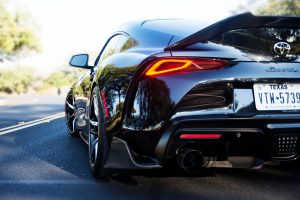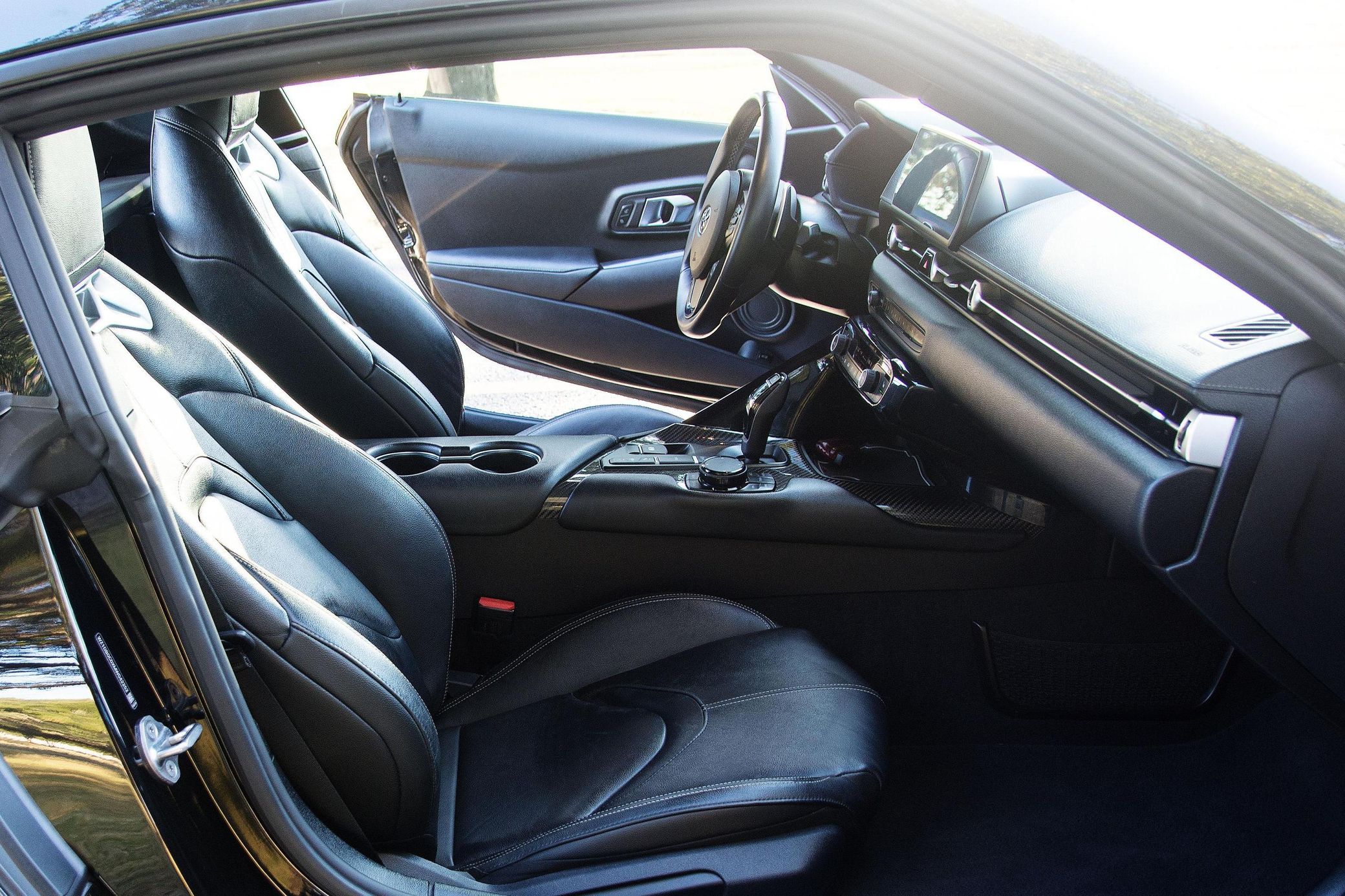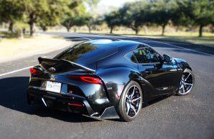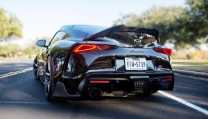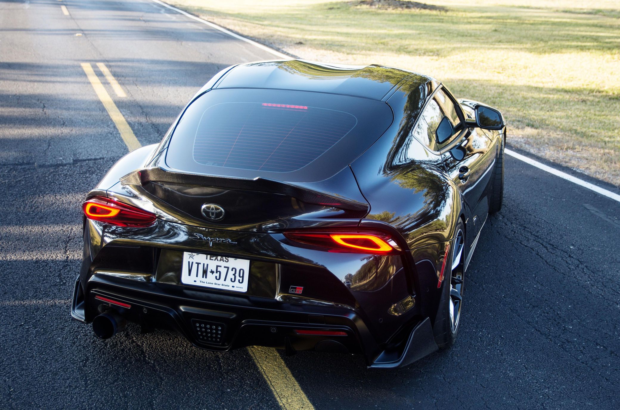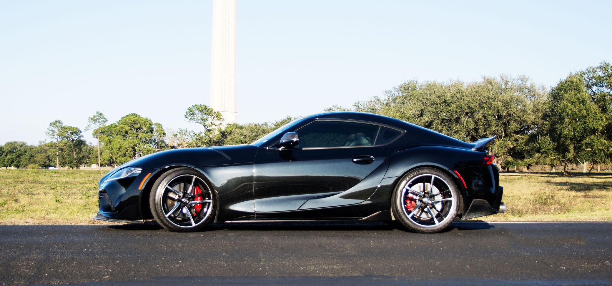THIS… is a 2021 Toyota Supra 3.0 Premium, finished in Nocturnal Black with a black interior. According to the build sheet provided in the gallery, notable factory equipment includes the Driver Assist Package, 19-inch wheels, an active sport differential, and a 12-speaker JBL sound system. Notable modifications reported by the seller include a Precision turbocharger, a Spool Performance top-mount turbo kit, a Project Gamma intake manifold, a Tomei Extreme Ti exhaust, a Pure Drivetrain Solutions transmission upgrade, and H&R lowering springs. The fifth-generation Supra, known as the A90, was introduced for the 2020 model year and marked the return of Toyota’s iconic sports car after a long hiatus. Developed in collaboration with BMW, the A90 Supra features a modern chassis and advanced technology while maintaining a focus on driving dynamics. It has quickly become popular among enthusiasts for its blend of performance, comfort, and heritage. Power comes from a turbocharged 3.0-liter straight-6, rated at 382 horsepower and 368 lb-ft of torque in stock form. According to the dyno sheet pictured in the gallery, this Supra now produces 649 horsepower and 585 lb-ft of torque as a result of its modifications. Output is sent to the rear wheels via an 8-speed automatic transmission.
