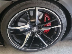 – Chips and scratches on paint protection film – Scuffs on front lip – Curb rash on wheels – An inspection report from November 2025 indicates that the rear total toe alignment is out. The seller states that an alignment will be performed prior to delivery to the buyer.