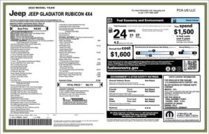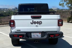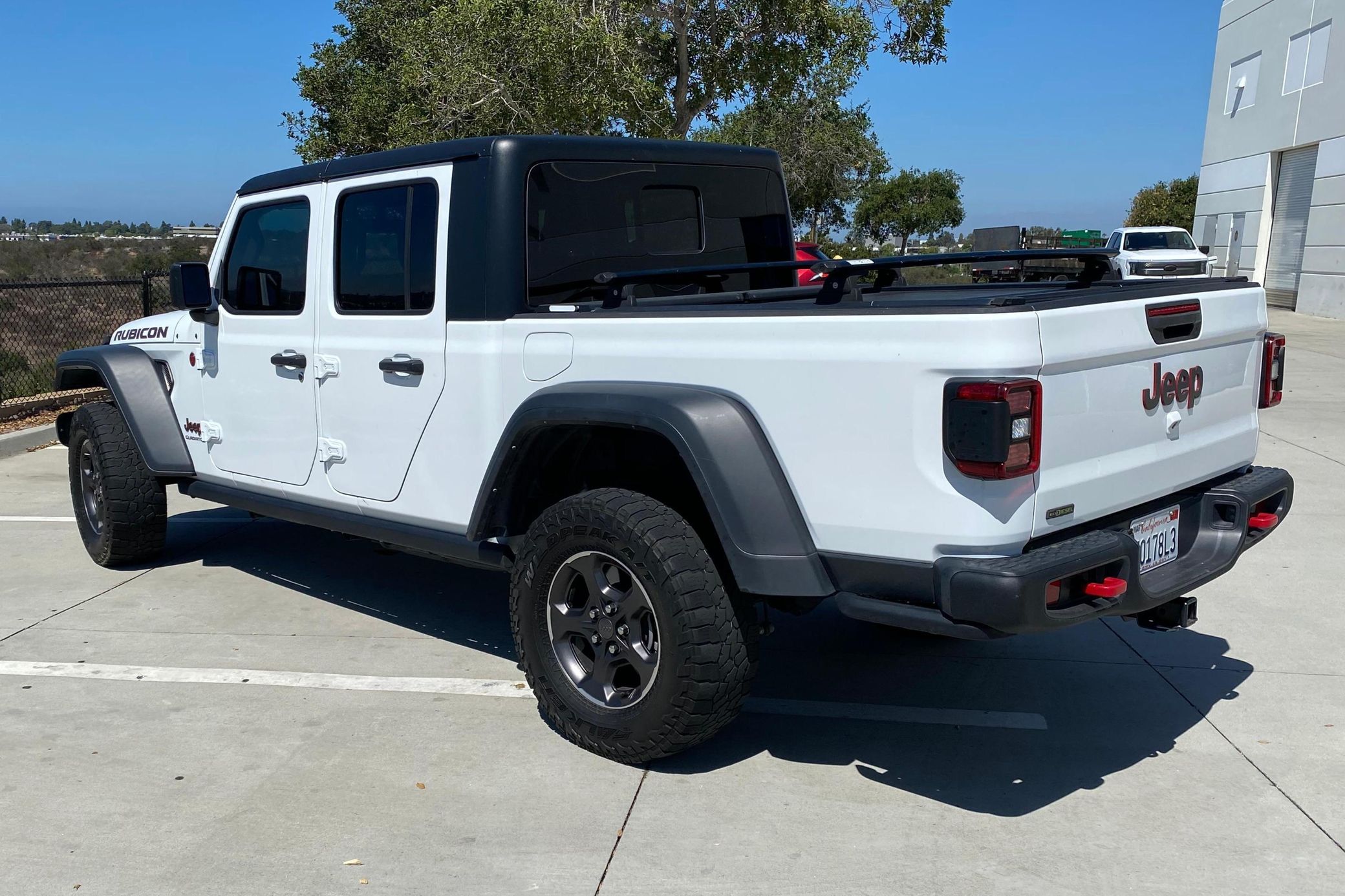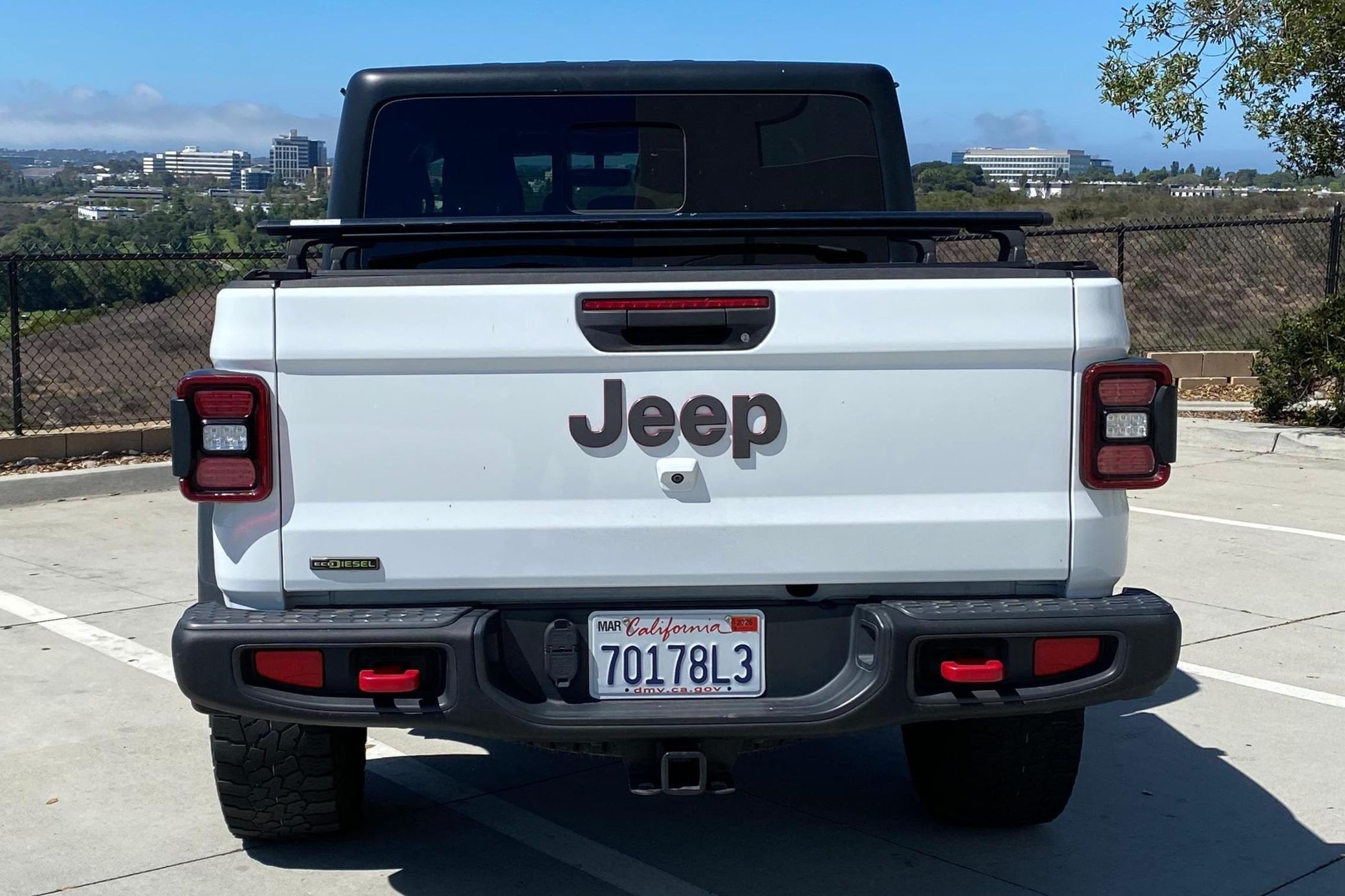 THIS… is a 2022 Jeep Gladiator Rubicon 4×4, finished in Bright White with a black interior. The attached Carfax vehicle history report shows no accidents or mileage discrepancies in this Jeep’s past; it also shows that this Jeep has been registered to one California owner since new. According to the digital window sticker provided in the gallery, notable factory equipment includes the Cold Weather Group, 17-inch wheels, Tru-Lok front and rear axles, a Freedom Top hardtop, and an Alpine sound system. Notable modifications reported by the seller include a Roll-N-Lock bed cover, Rhino Rack truck bed racks, and a spray-in bedliner. Jeep returned to the pickup segment after a long hiatus when it released the Gladiator for 2020. Offered only with four doors, it’s closely related to the fourth-generation Wrangler, so it offers heritage-laced styling, body-on-frame construction, and excellent off-road capacity. Power comes from a 3.0-liter turbodiesel V6, rated at 260 horsepower and 442 lb-ft of torque. It spins the rear or all four wheels via an 8-speed automatic transmission and a 2-speed transfer case.